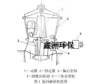 早在1880年旋回破碎机就应用于工业部门。至今仍广泛的应用于大中型选矿厂及其它各工业部门,用于破碎各种不同硬度的矿石和岩石。 旋回破碎机的工作原理。如图1所示。它的主要工作部件是可动圆锥(简称动锥)和固定圆锥(简称定锥)。它们之间形成的空间叫做破碎腔。